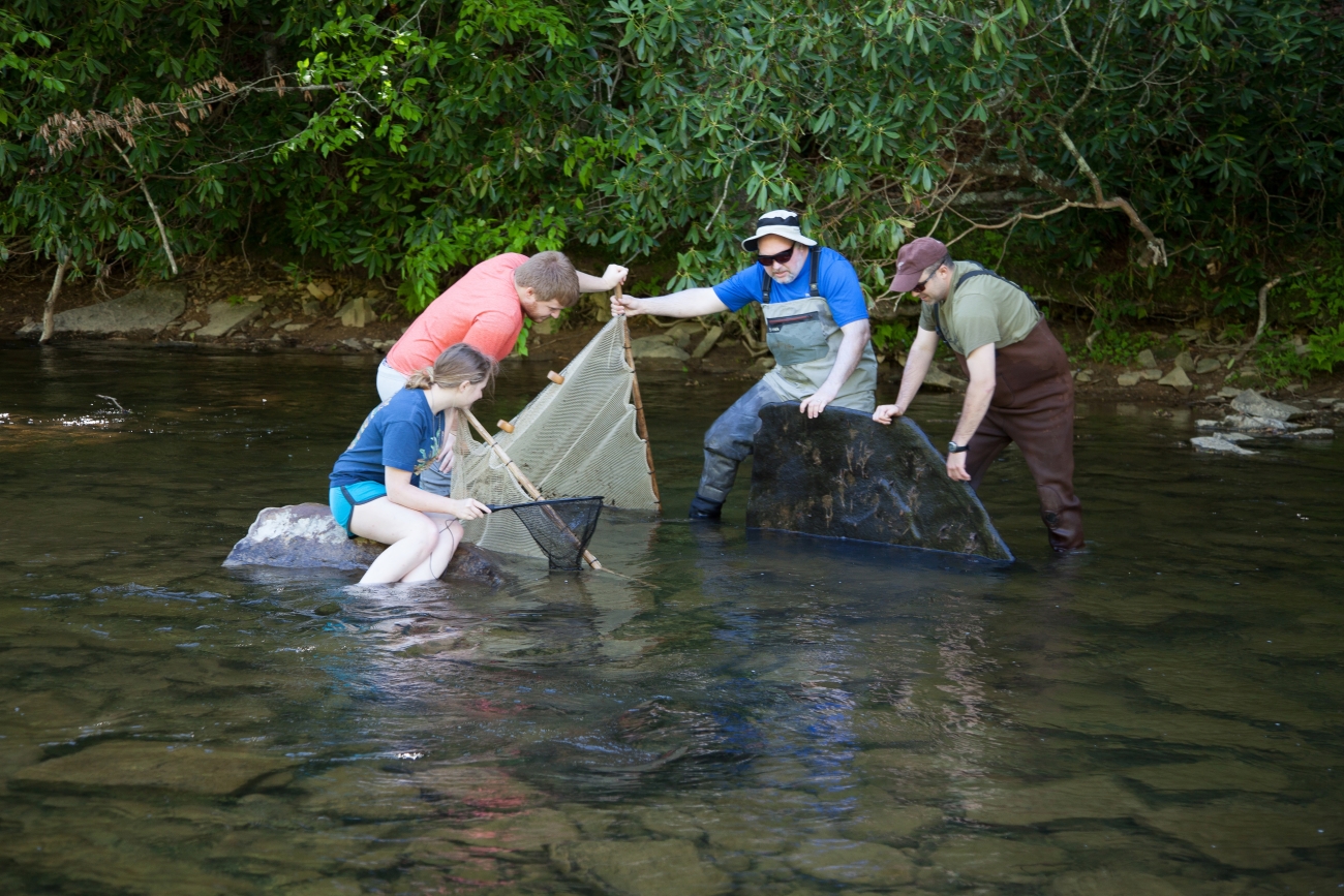 U.S. Fish and Wildlife Service Fisheries Biologists using nets in the Greenbrier River.