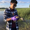 Oscar Hernandez, Latinx family liaison for Minnesota Valley National Wildlife Refuge, takes part in duck banding.
