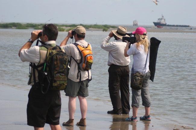 Louisiana Department of Wildlife & Fisheries biologist joins U.S. Fish & Wildlife Service Biologists for a nesting bird survey on a Breton National Wildlife Refuge.
