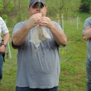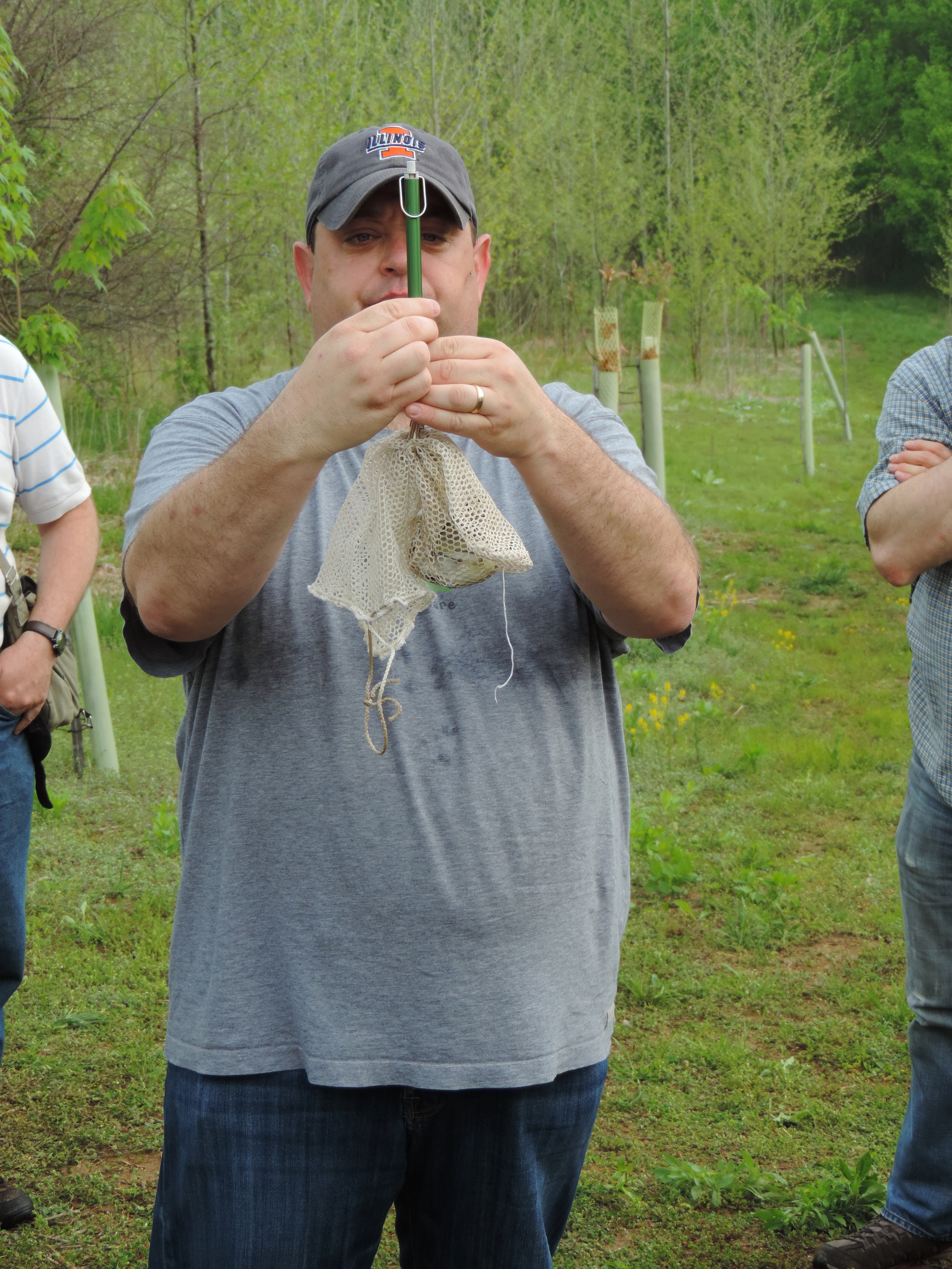 This is a picture of a U.S. Fish and Wildlife Service employee checking the bodyweight of a bird during banding at a Basic Bird Biology course.