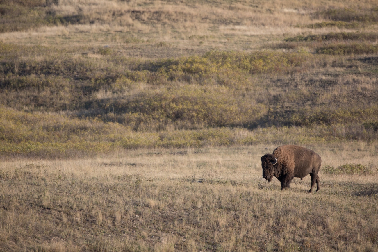 Bison bull in landscape