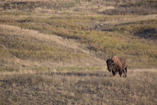 Bison bull in landscape