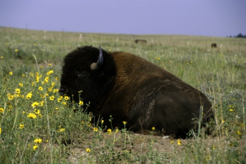 A buffalo eating grass at Fort Niobrara National Wildlife Refuge. Resource links:http://www.fws.gov/fortniobrara/