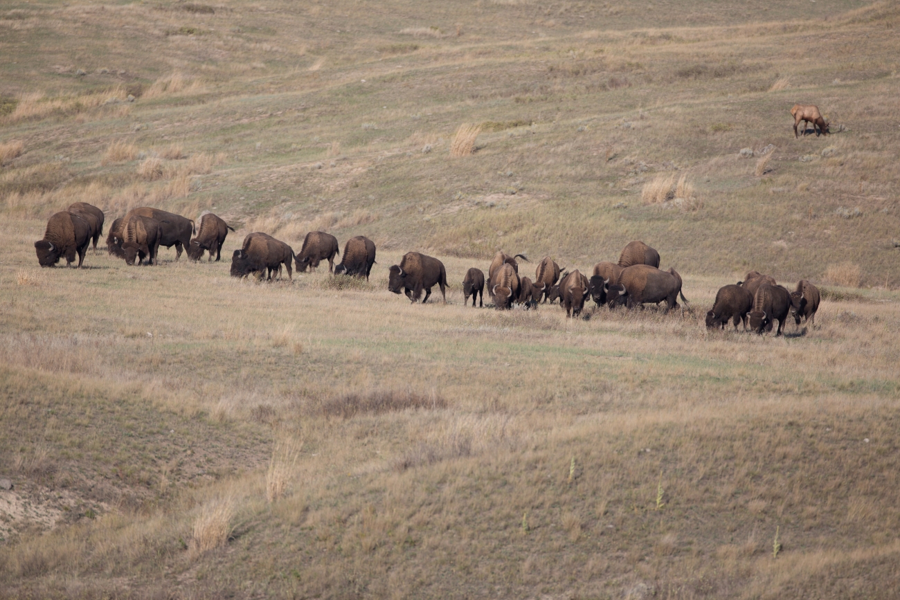 Bison herd grazing