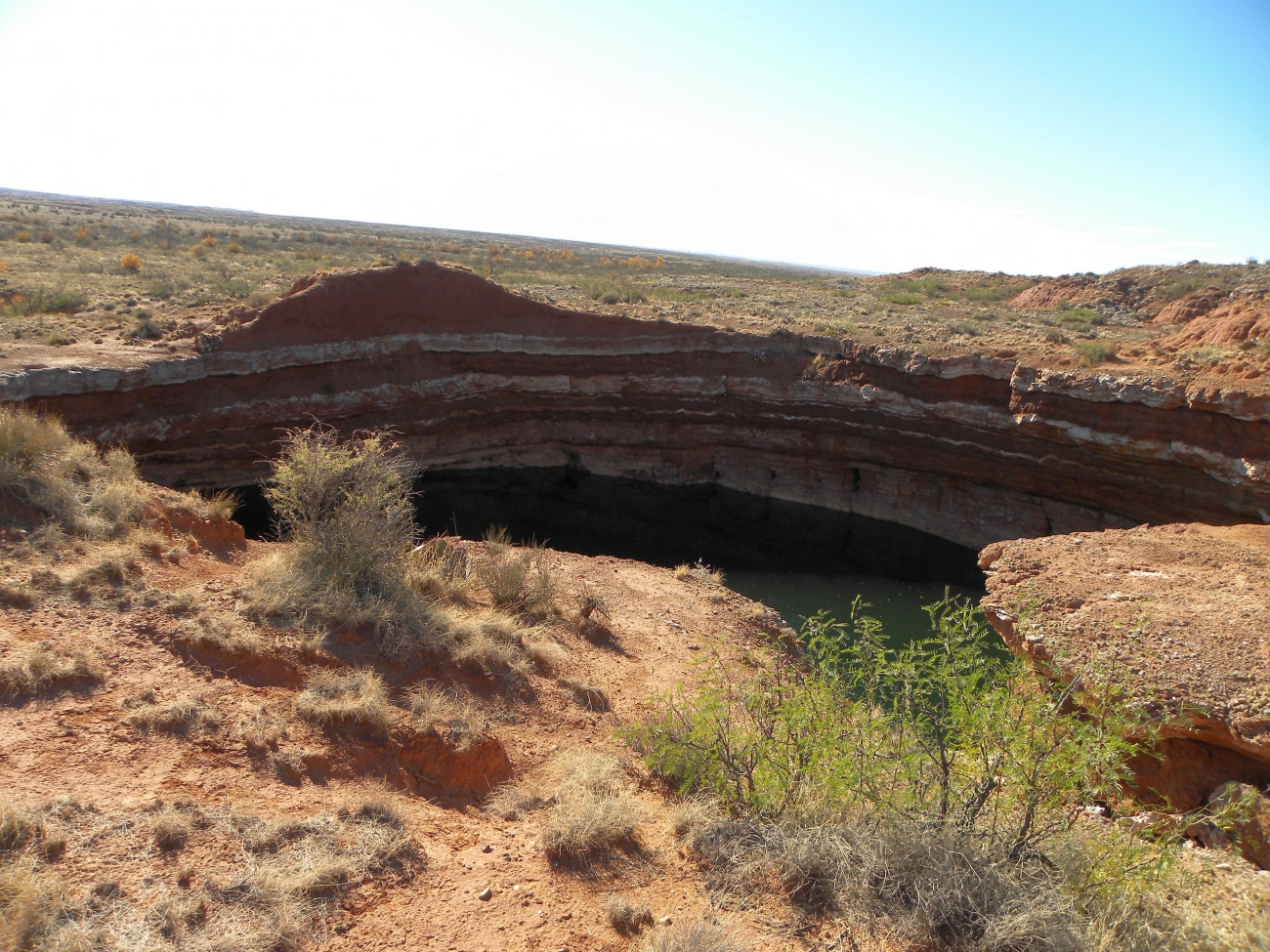 Ink spot sinkhole at Bitter Lake National Wildlife Refuge. Visitors view the geologic features, bubbling springs and unique desert wildlife make the refuge a true oasis.