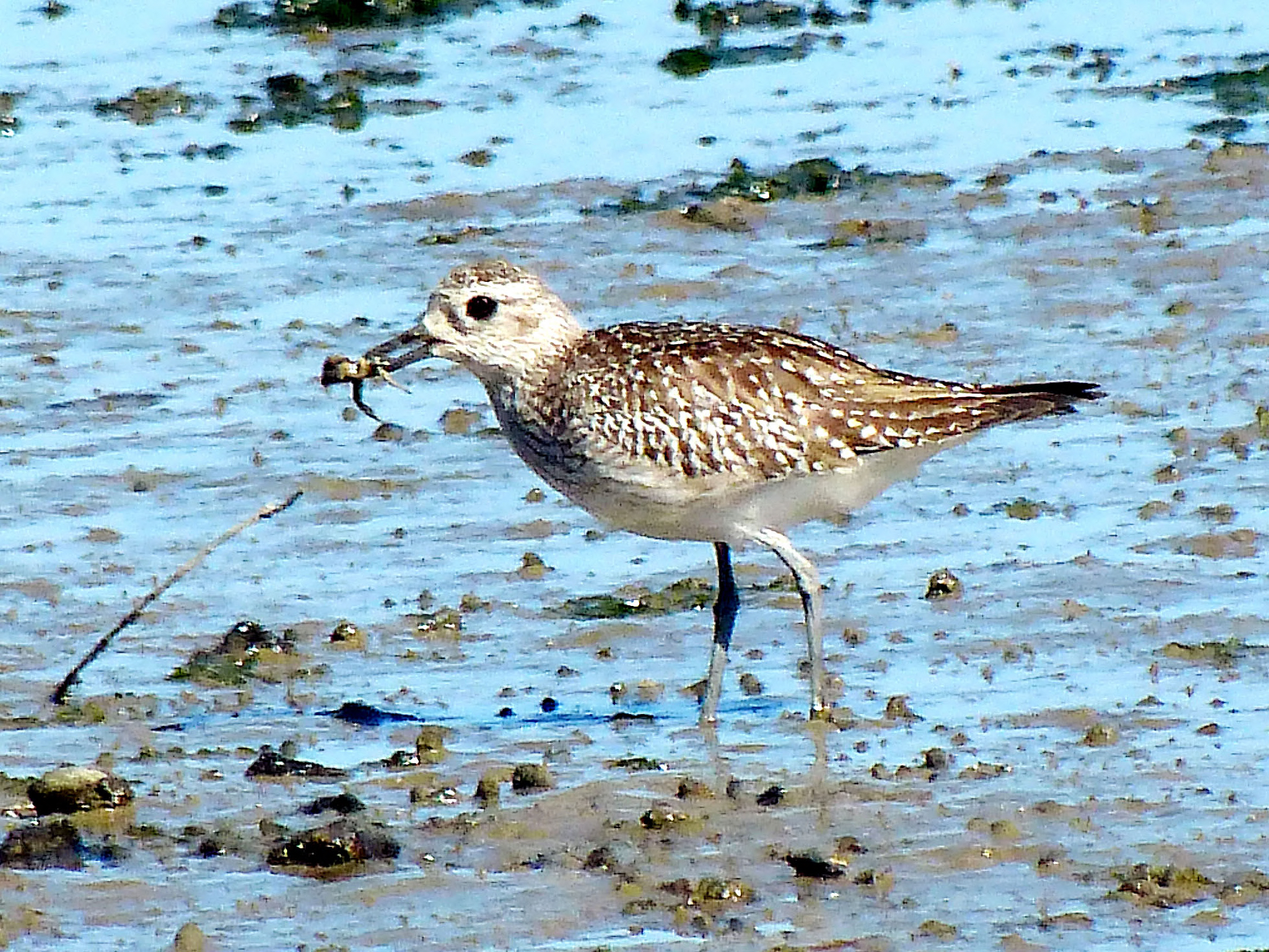 Non-breeding Black-bellied Plover. A large shorebird of coastal beaches, the Black-bellied Plover is striking in its black-and-white breeding plumage. It is the largest plover in North America and can be found along the coasts in winter northward to Massachusetts and British Columbia.