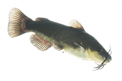 The Black bullhead has the ability to thrive in waters that are low in oxygen, brackish, turbid, and/or very warm. Black bullheads are distinguished by other bullhead catfish by their very broad head and their long dark "whiskers."