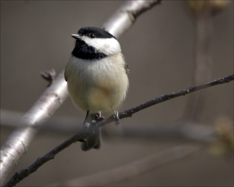 Black-capped chickadee perched on branch at National Conservation Training Center, Shepherdstown, WV