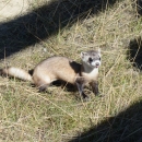 A Black-footed Ferret kit studies visitors from its outdoor preconditioning pen at the National Black-footed Ferret Conservation Center in Colorado.