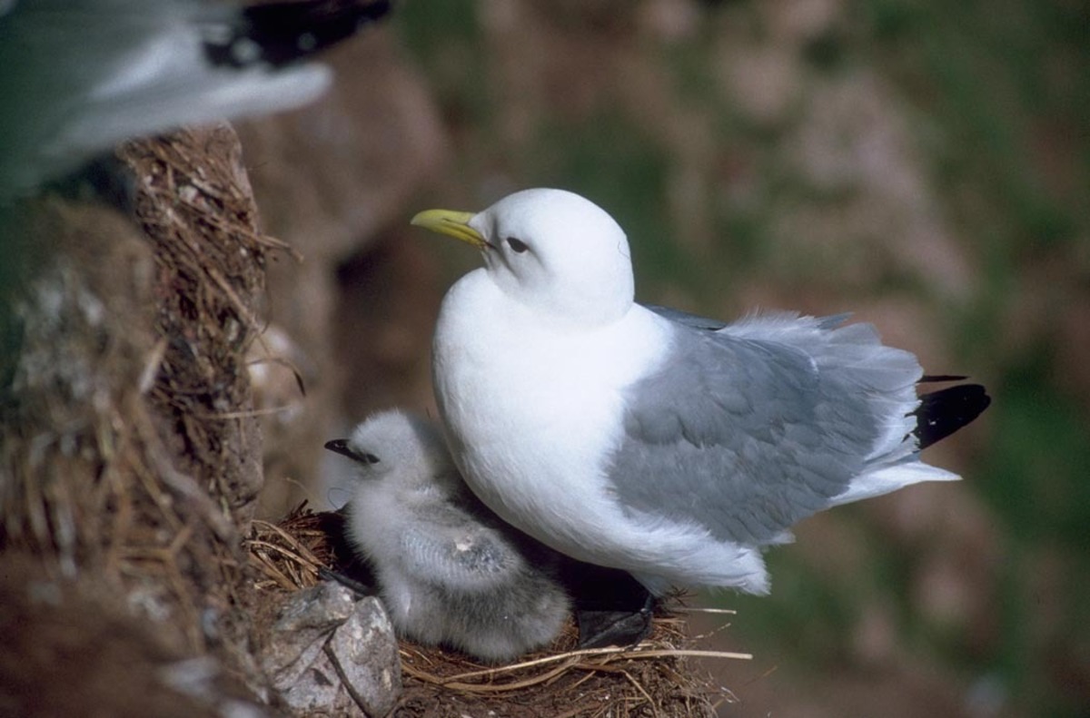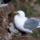 Black-legged kittiwake and chick on nest