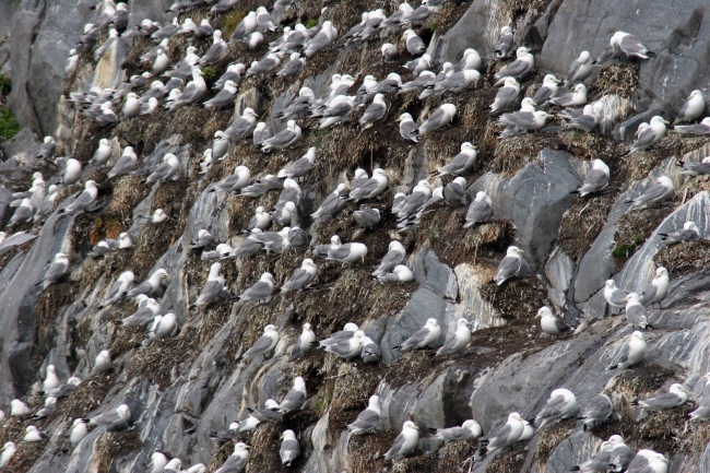 A black-legged kittiwake colony in Shoup Bay located in Prince William Sound, Alaska.