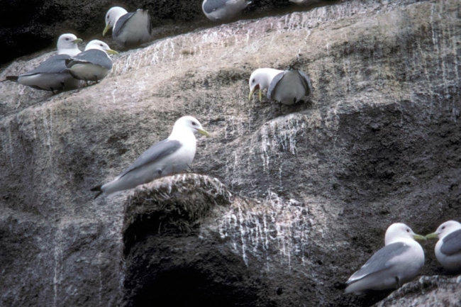 Black-legged kittiwakes nesting