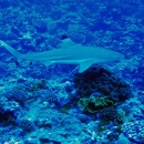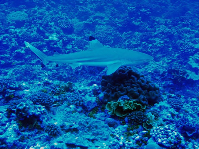 Blacktip reef shark (Carcharhinus melanopterus) on the north side of the Palmyra Atoll.