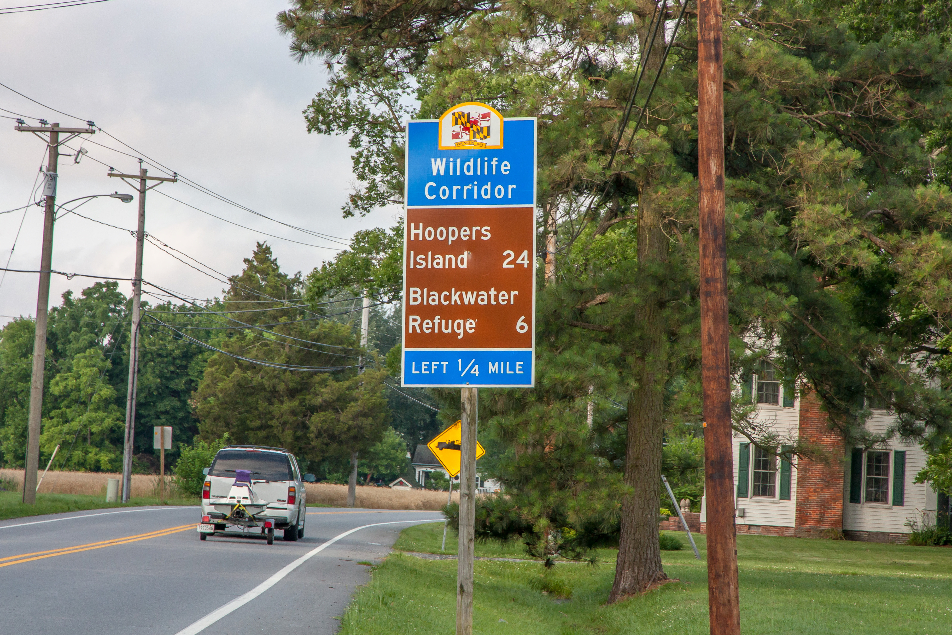 Blackwater National Wildlife Refuge and sign along road