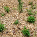 Blazing stars (Liatris spicata) are beginning to sprout in our pollinator garden, surrounded by Butterfly Milkweed (Asclepias tuberosa) and Dwarf Tickseed (Coreopsis auriculata)