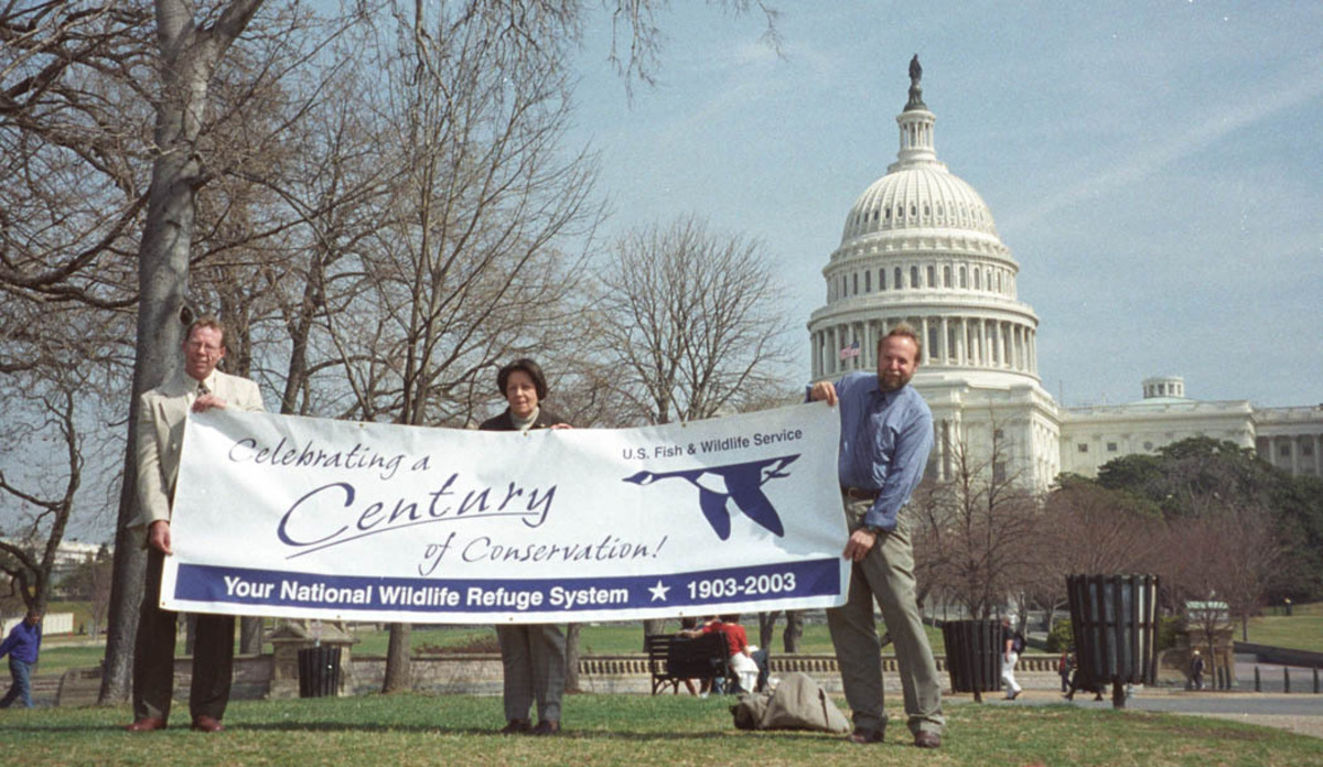 A celebration of the Blue Goose 99th birthday by Region 3 Refuge Chief Nita Fuller, Don Hultman, Jon Kauffield, Lim Leach, March 11 -15, 2002 Blue Goose logo banner