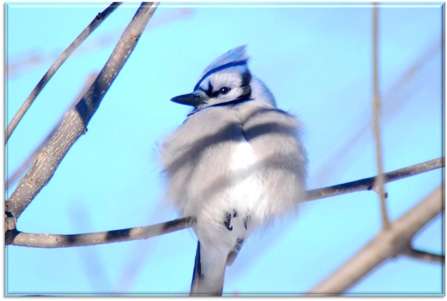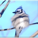 Blue jay sitting with fluffed up feathers