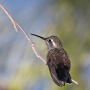 Large, dull-colored hummingbird with large black-and-white tail. Blue-throated Hummingbird photographed south fork, Cave Creek, Cochise County, Arizona.