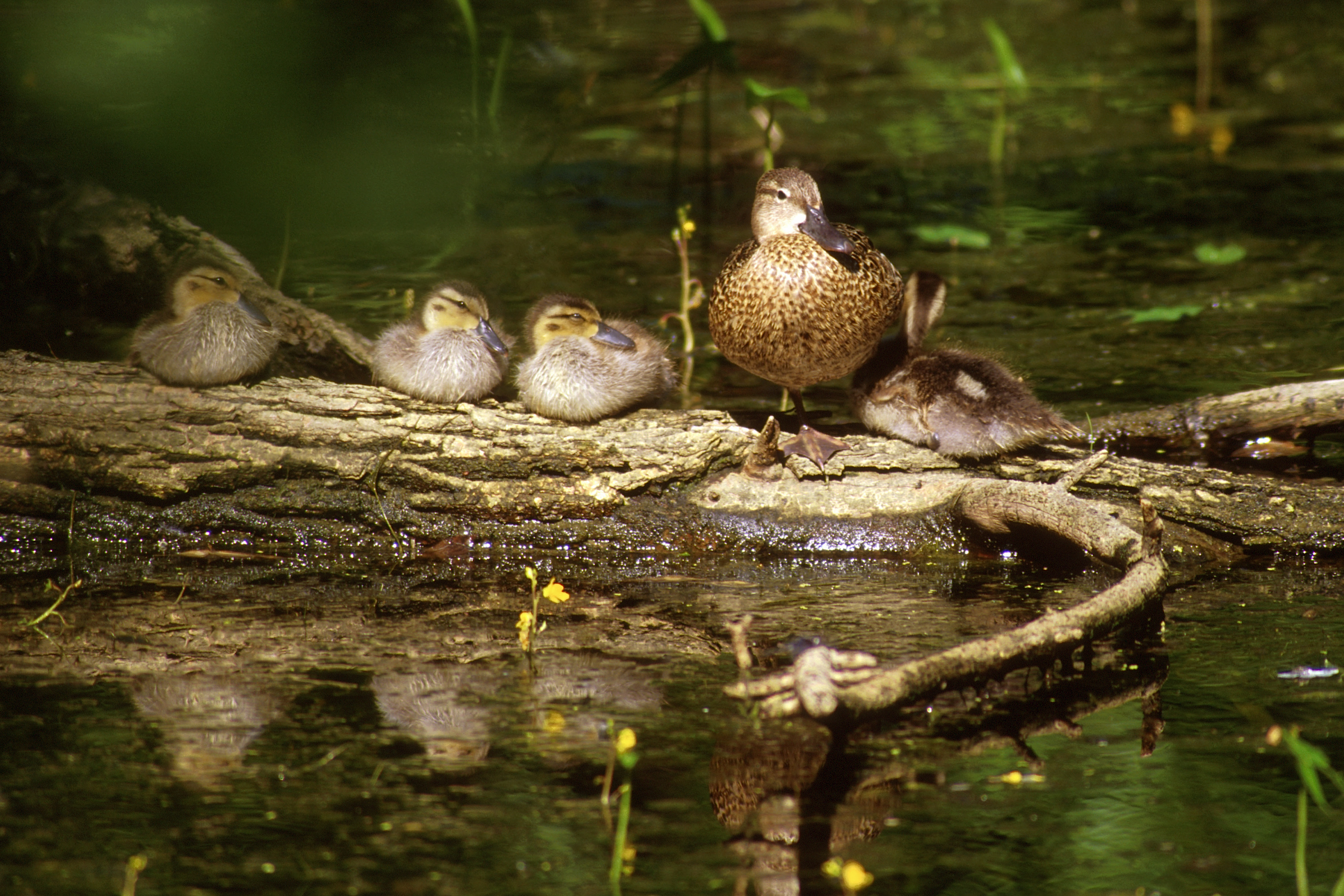 A beautiful view of a female Blue-Winged Teal and her brood at the J.Clarke Salyer National Wildlife Refuge located in north-central North Dakota