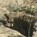 A blunt-nosed leopard lizard at its burrow on Pixley NWR.