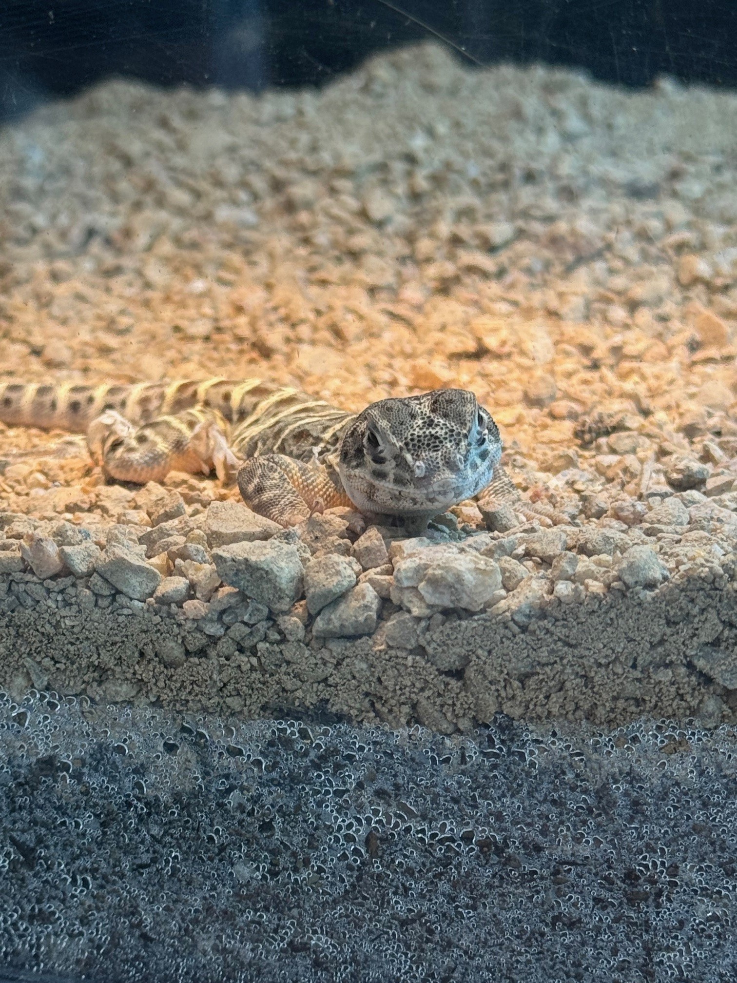 A blunt-nosed leopard lizard part of the captive breeding program at the Fresno Chaffee Zoo checks out its new home at the Conservation Action Center at the Zoo.