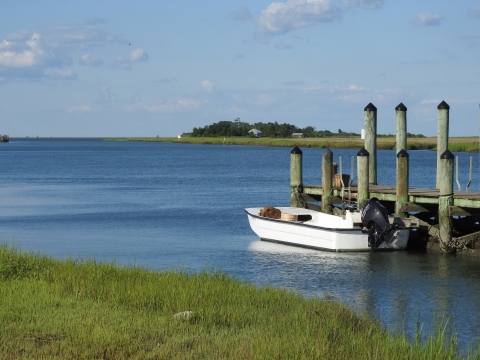 Boat dock at Eastern Shore of Virginia NWR. Located on the Virginia Inside Passage, the Wise Point boat ramp provides access to the Atlantic Ocean and Chesapeake Bay.