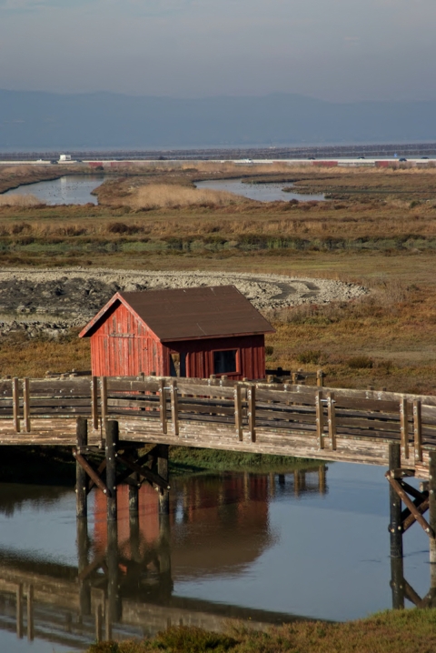 image of a boat house on the Don Edwards San Francisco Bay National Wildlife Refuge. Image taken from USFWS Pacific Southwest Region Flickr page.