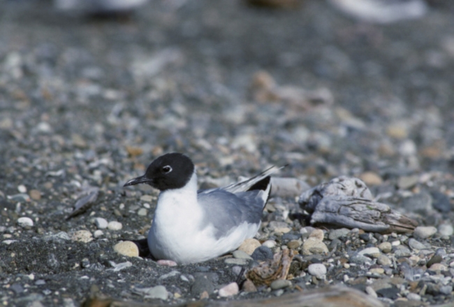 Bonaparte's gull sitting nest on pebbled beach at Brooks Camp in Katmai National Park, Alaska. For more information about game birds visit http://www.fws.gov/birds/.