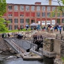 Service Fish Passage Engineer Bryan Sojkowski designed a concrete Denil fishway tinted the color of the remnant dam stones for the Box Mill Dam site.