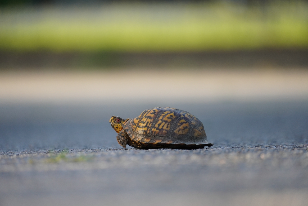 A box turtle catches some morning sun on the road leading up to the Eastern Shore of Virginia National Wildlife Refuge Visitor Center.