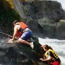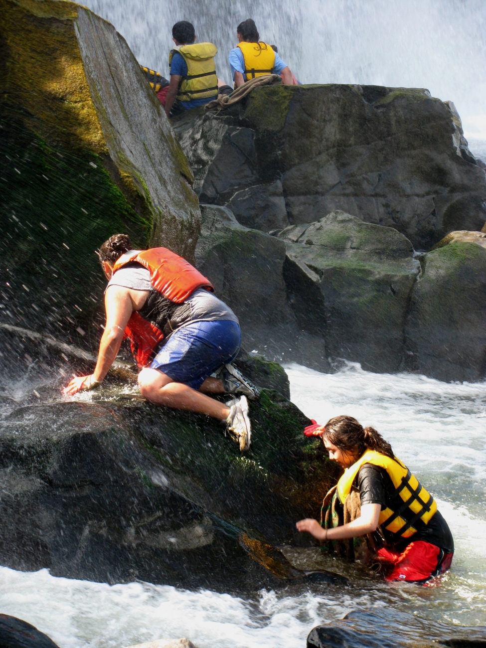 Braving the slippers rocks in search of Pacific lamprey at WillWillamette Falls, Oregon