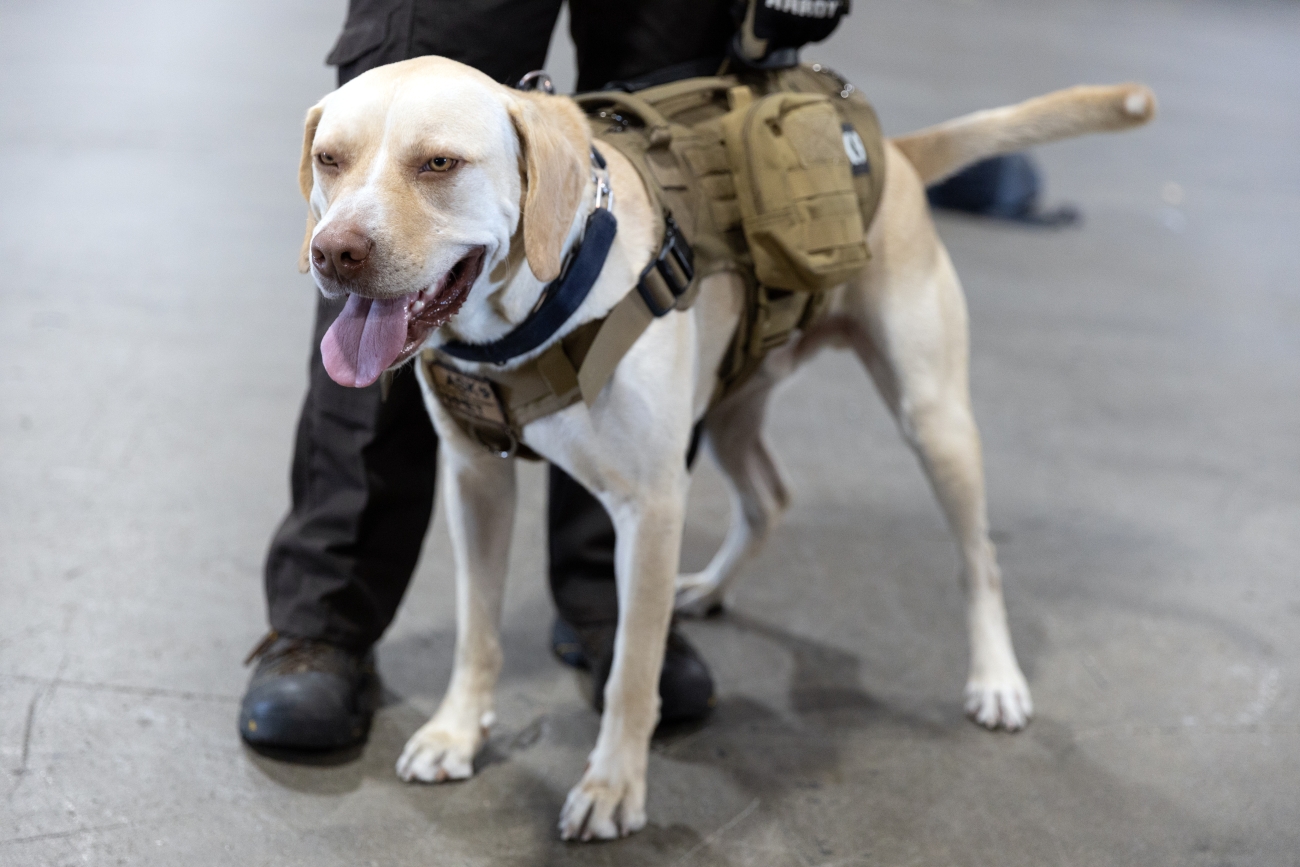 Braxton, a K-9 dog for the Office of Law Enforcement at a warehouse in Southern California in November, 2023. Credit: Becca Fabbri/USFWS