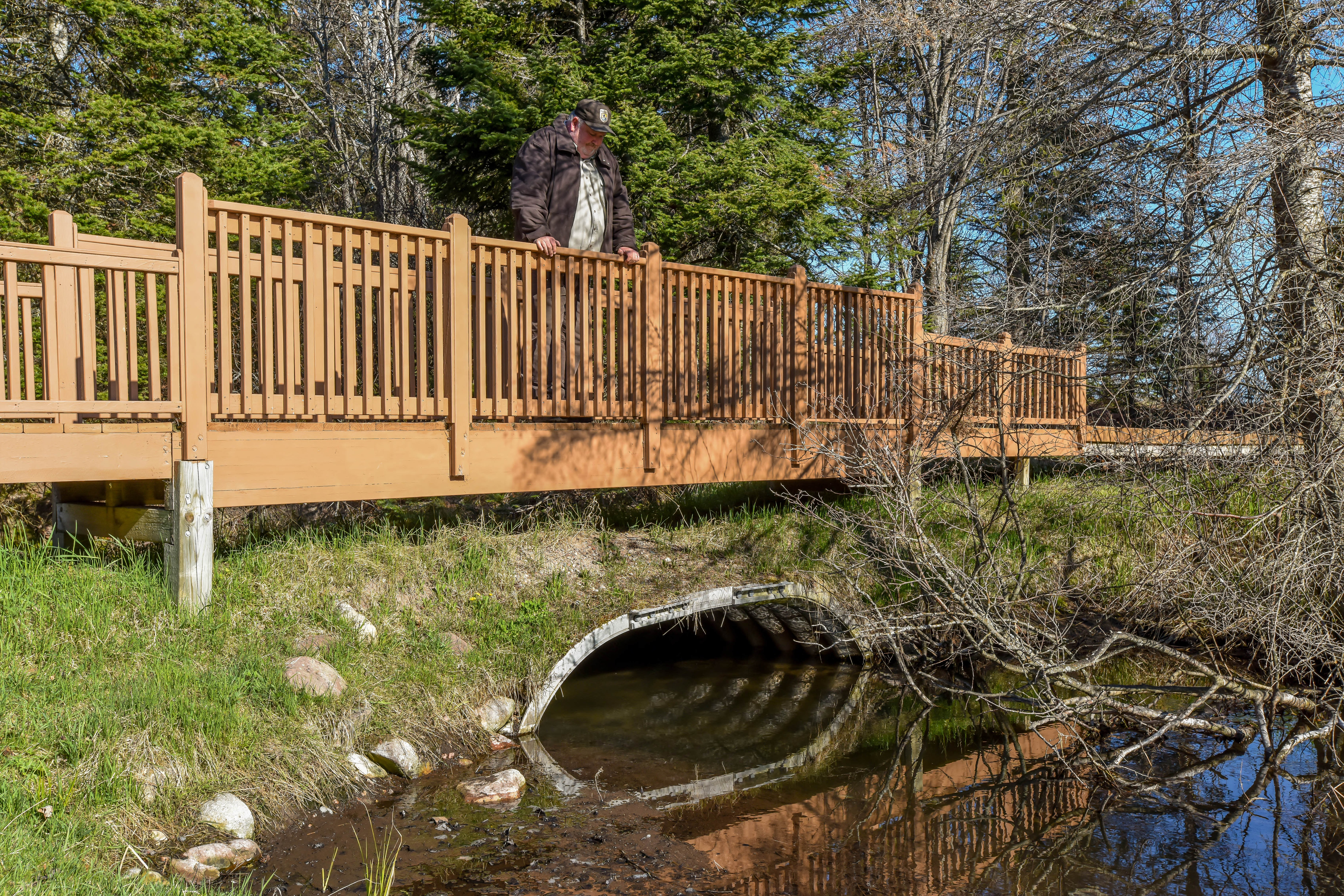 Bridge over creek at Pendills Creek National Fish Hatchery.