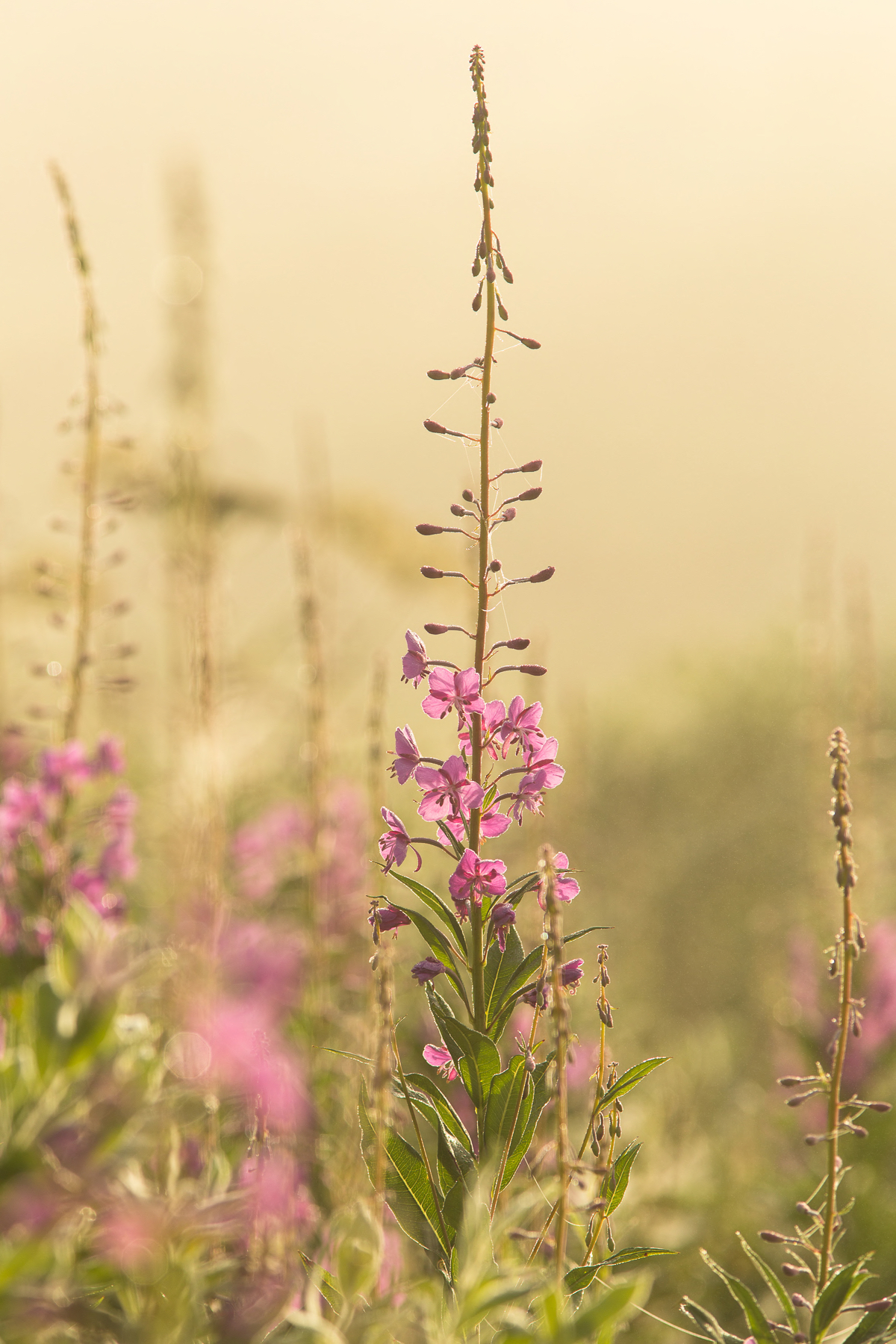 Bright pink blossoms of fireweed (Epilobium angustifolium) grow on long stalks in summer meadows throughout the Archipelago.