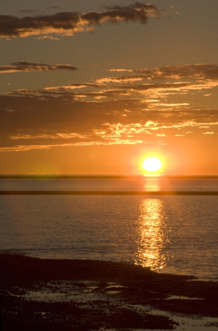 Picture shows the sun setting at the refuge. The Arctic National Wildlife Refuge, a vast and beautiful wilderness, is an intact continuum of six different ecological zones spanning some 200 miles north to south. Such a diverse spectrum of habitats and associated fish and wildlife populations within a single conservation area is unparalleled in the circumpolar north.