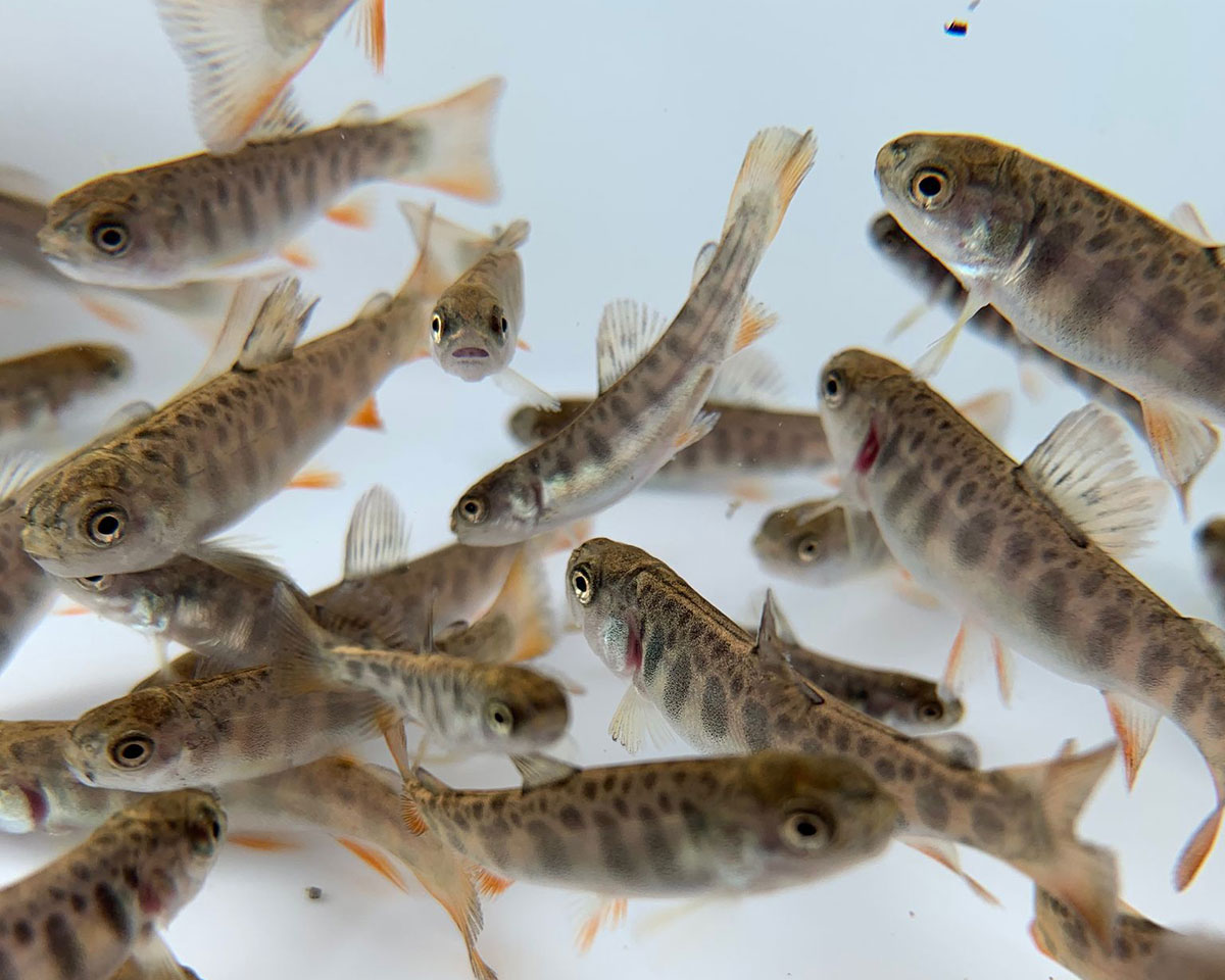 Brook trout fingerlings at Nashua National Fish Hatchery (Soda Lake strain)