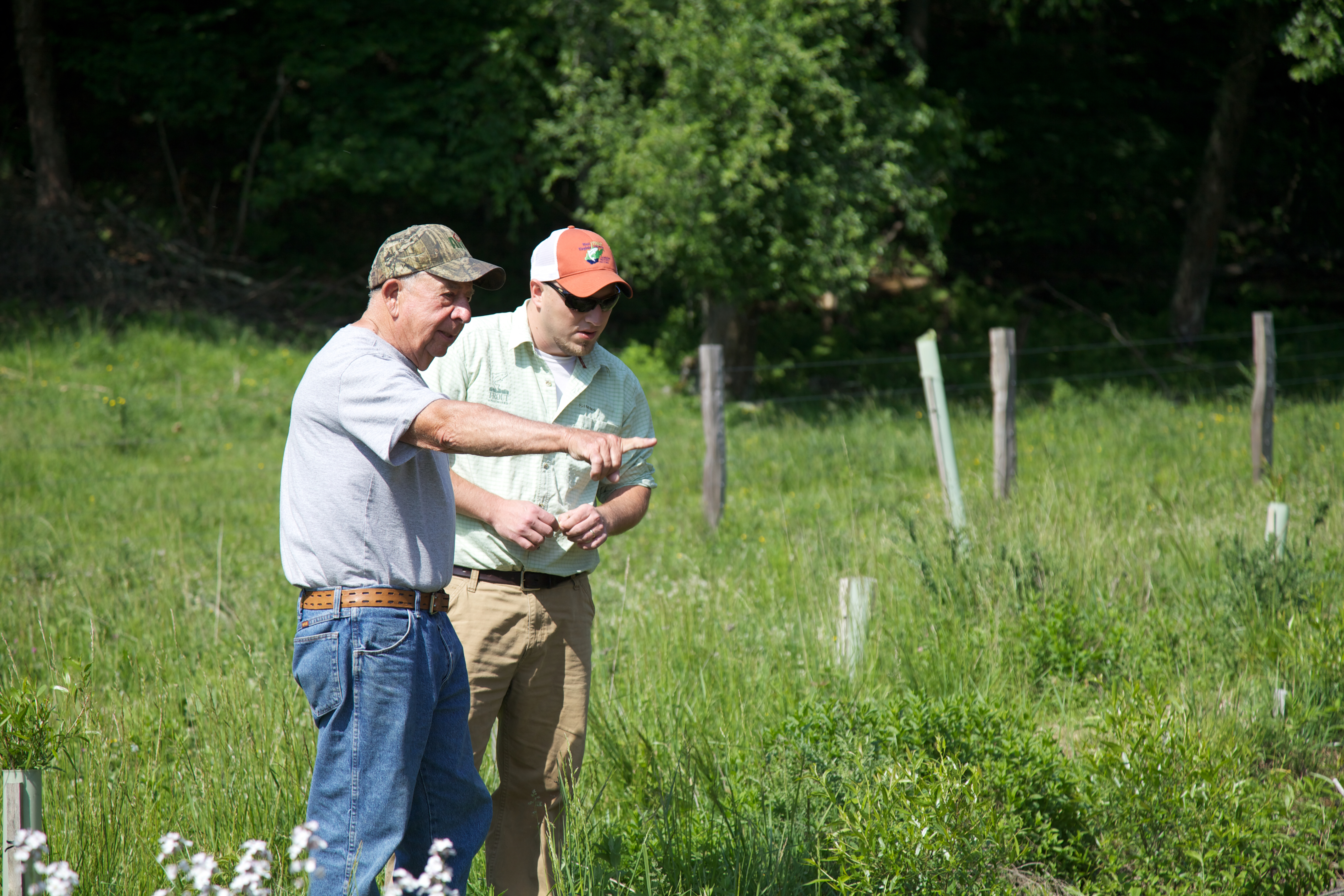 Trout Unlimited & landowner discussing the restoration of the stream.
