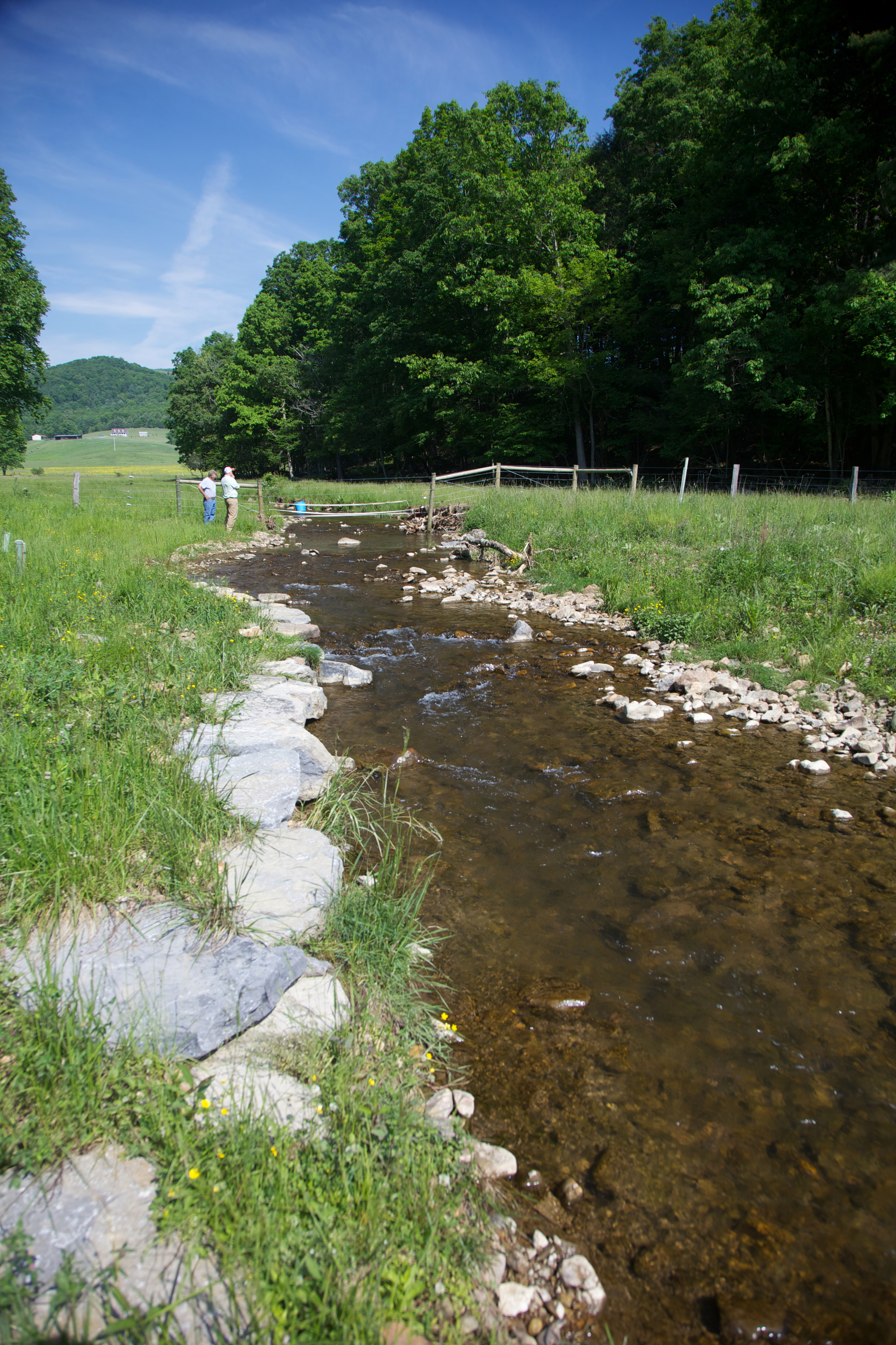 Trout Unlimited & landowner look at restored Brook Trout stream.