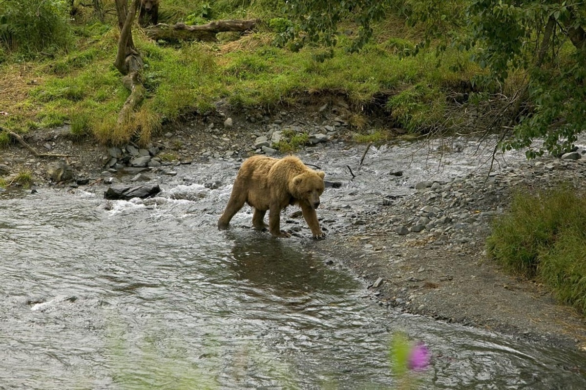 Brown bear at river's edge