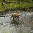 Brown bear walking at edge of water in the Kodiak National Wildlife Refuge.