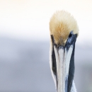 The Brown Pelican is a comically elegant bird with an oversized bill, sinuous neck, and big, dark body. Squadrons glide above the surf along southern and western coasts, rising and falling in a graceful echo of the waves. They feed by plunge-diving from high up.