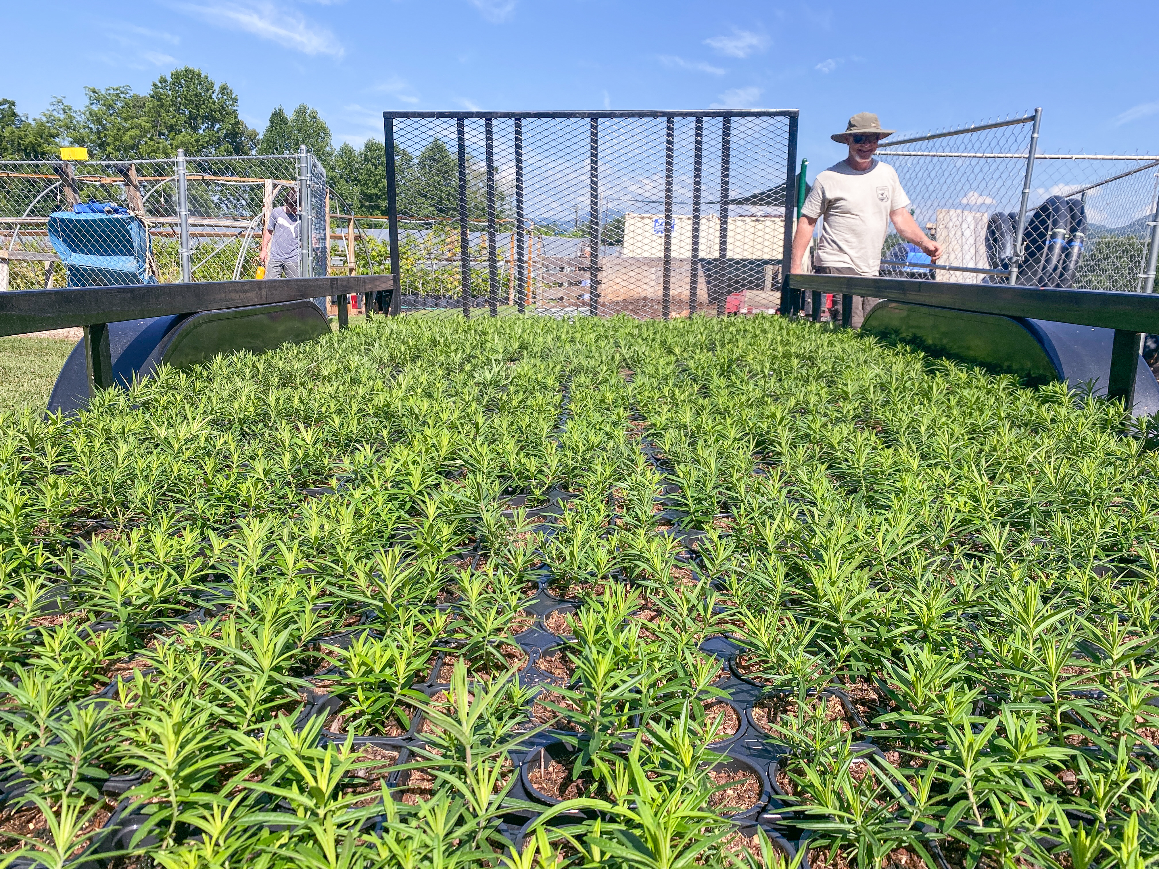 Bryan Tompkins prepares to unload donated butterfly milkweed plants. Buncombe County, NC.
