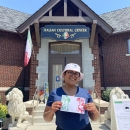 Buffalo Urban Wildlife Refuge intern Wasiq Ahmed holding up the Italian Flag nature stamp craft at the Italian festival.