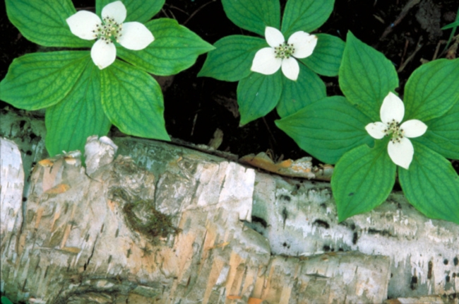 White flower with black and yellow center over green leaves. For more information about wildflowers visit the National Plants Database Additional Resources: National Plants Database http://plants.usda.gov/.