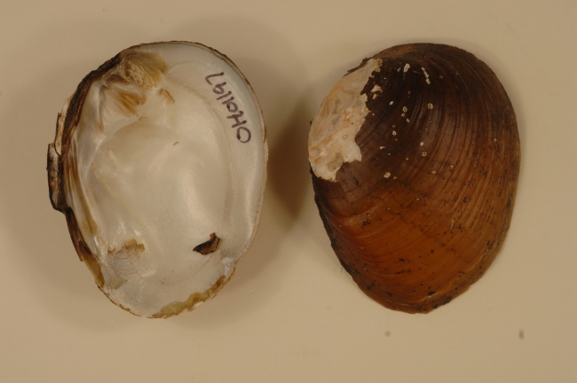 NCTC Freshwater Mussels Teaching Collection: Order: Unionoida Family: Unionidae Genus (ITIS): Ellipsaria Species: lineolata Williams et al.: Use to be: Location Name: Ohio River near Ripley Location State: OH