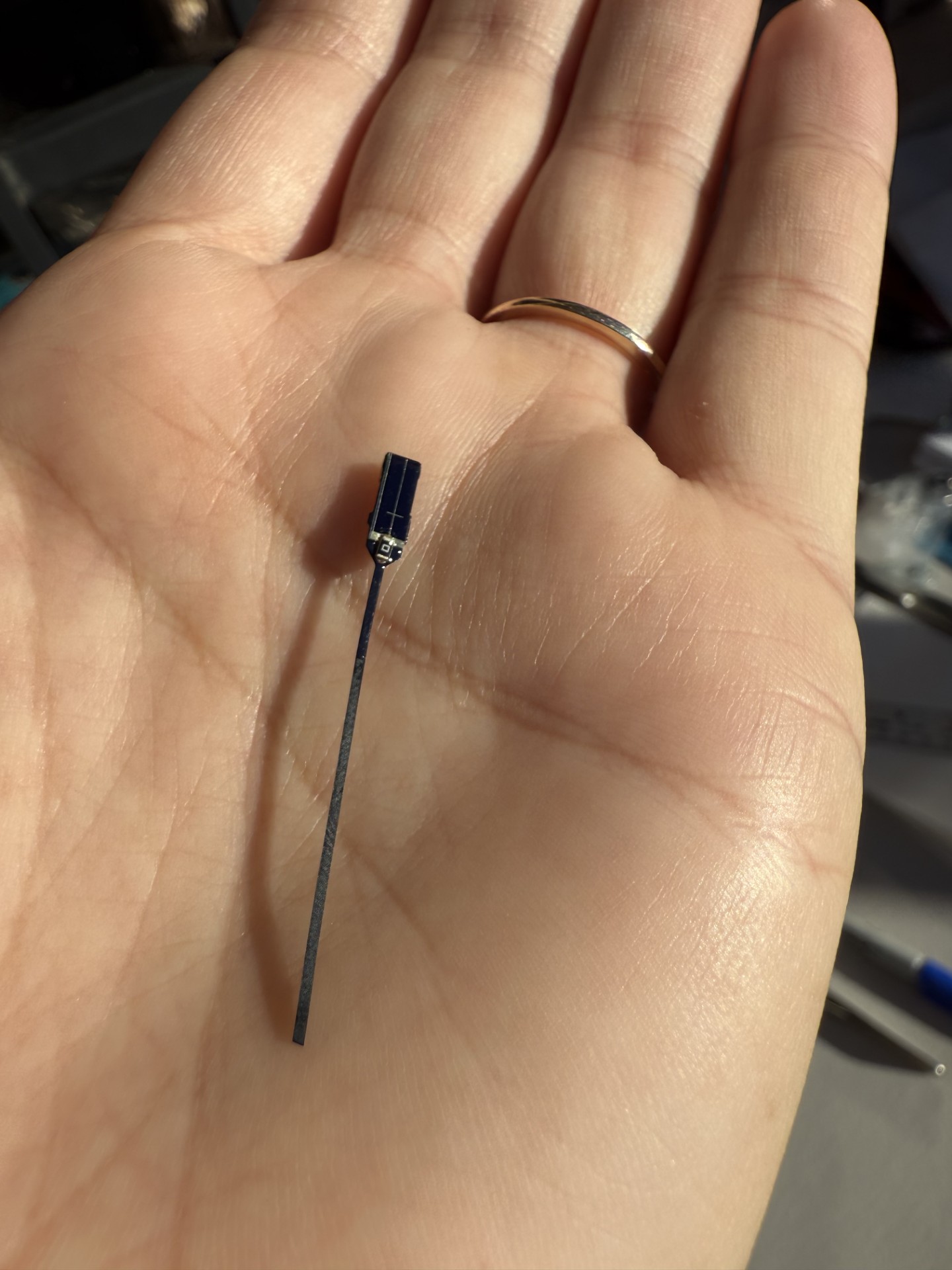 Coastal Program biologist holding a radio telemetry transmitter for a monarch butterfly
