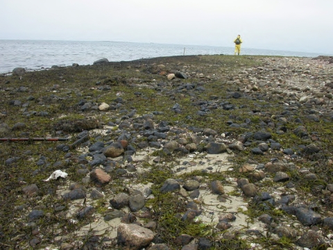 USFWS worker cleaning up after oil spill, Buzzards Bay.