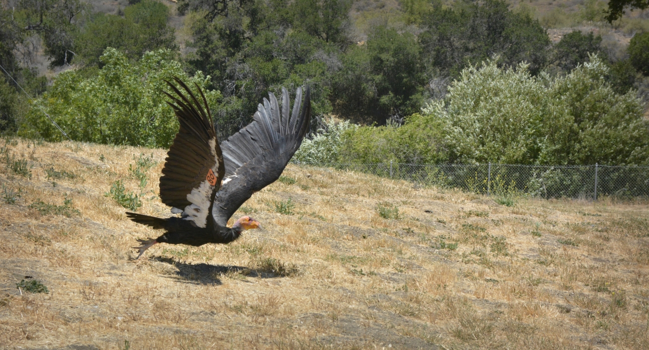 Condor #98 takes off for home. Condor #98 was released after a physical exam at the Hopper Mountain condor facility on June 24, 2014.