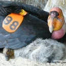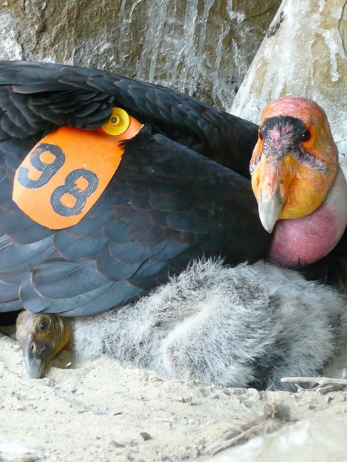 A California condor protects its chick in a nest cave near Hopper Mountain National Wildlife Refuge.