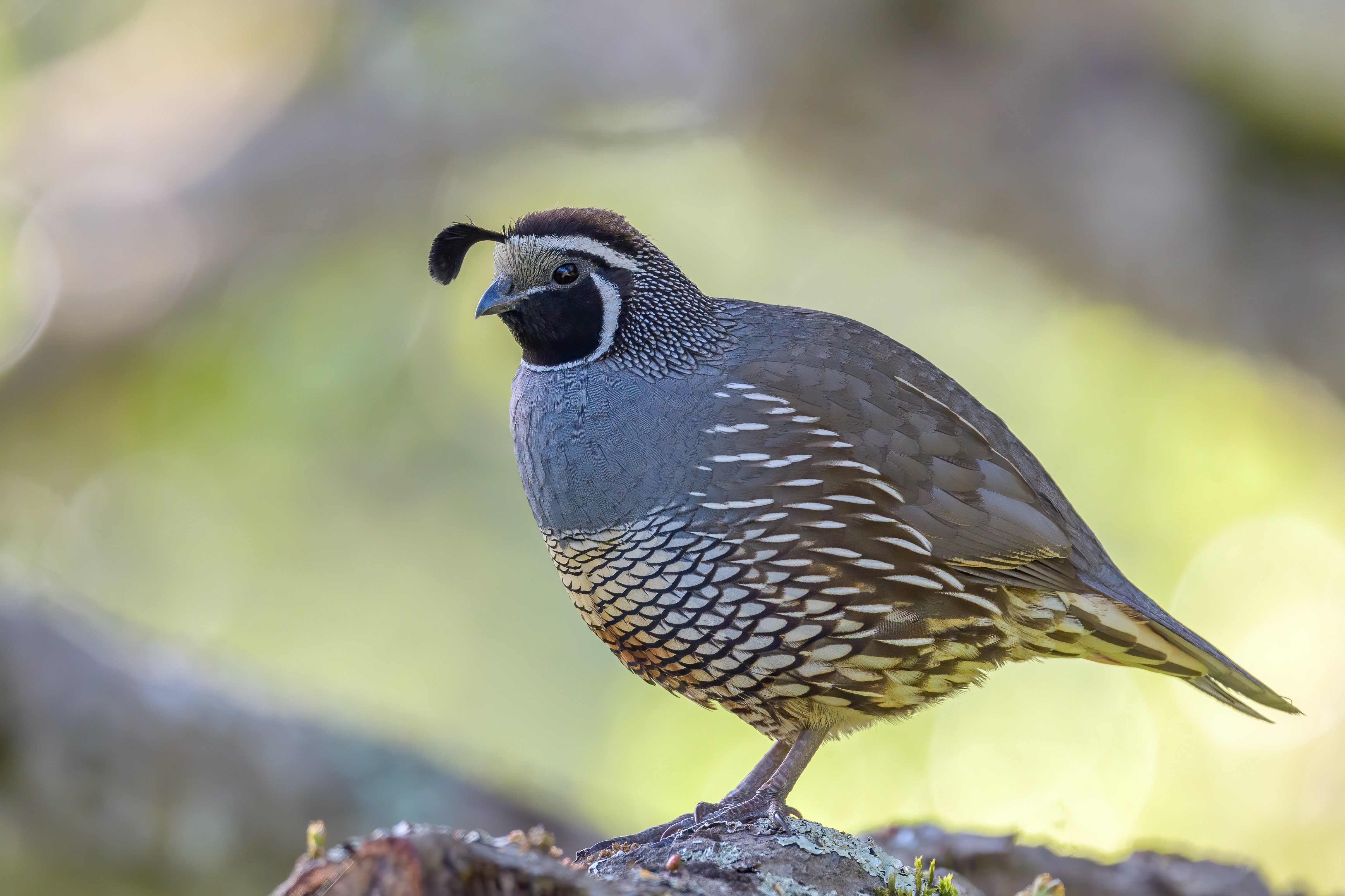 A California Quail stands on a rock in Tilden Regional Park - Inspiration Point, Contra Costa County, California